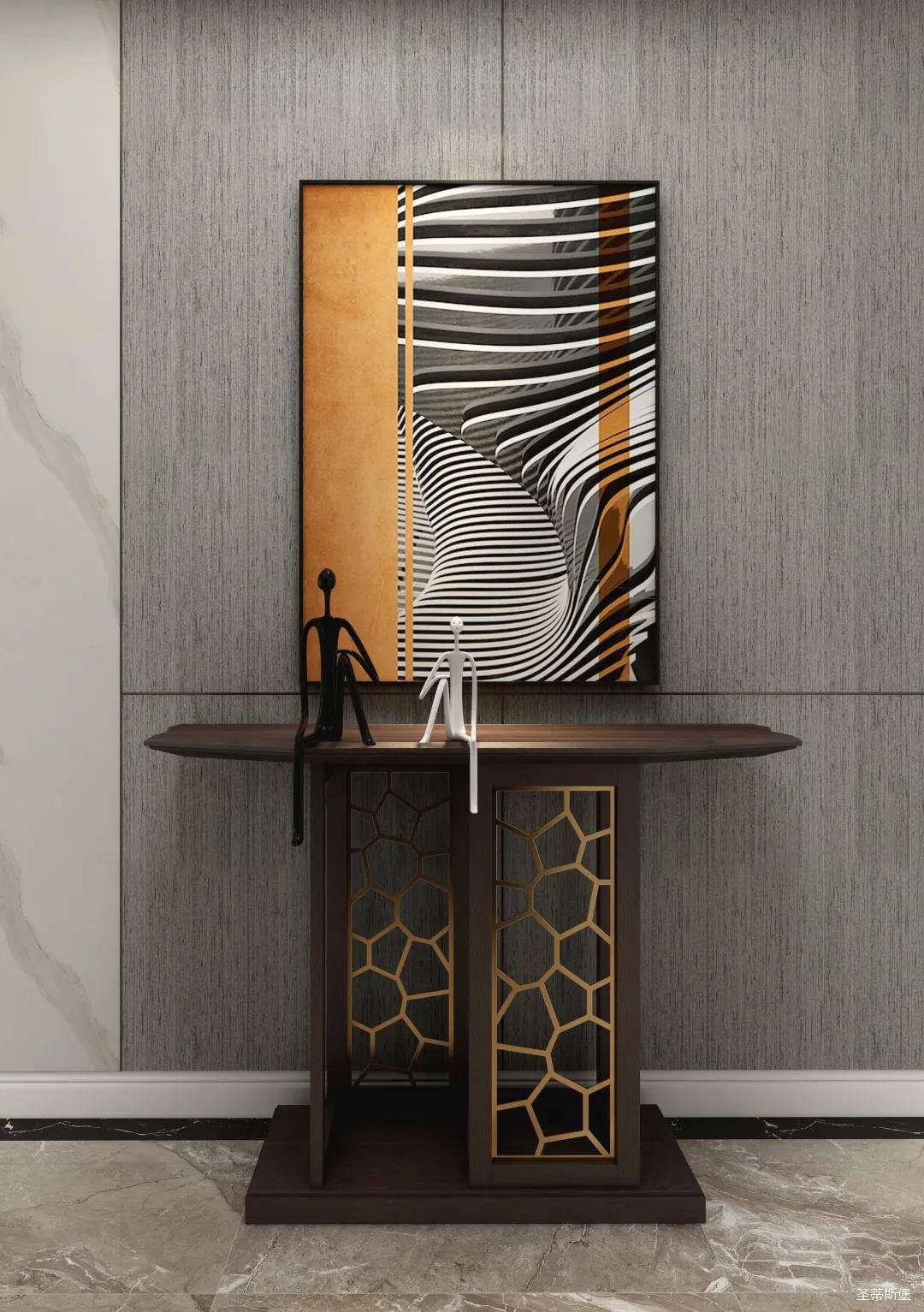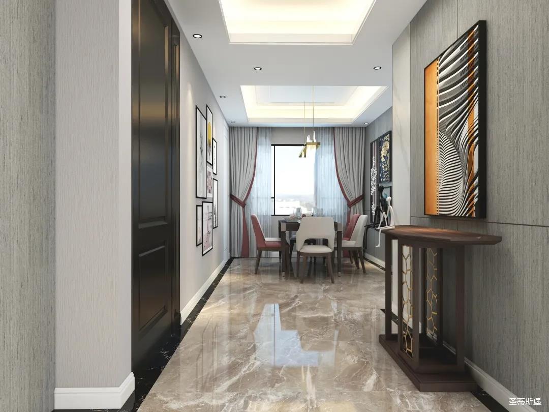 客厅与餐厅虽分两个空间展开,但无明显隔断,室内一眼望去,清透明亮,就近靠窗可引入秀丽美景,迎来充沛的阳光。造型灯线条也颇有意境,让空间圆润生动起来,整体显得大气雅致,轻奢有范。软装搭配的选择也极为重要哦,好的搭配才能彰显品位,色彩跳跃的装饰画,让整个空间鲜活生动,饱满有趣。