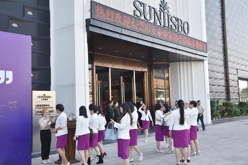 下午3时许,东莞市女企业家协会理事会的嘉宾们陆续到达现场,她们分别在签到墙前进行签到点赞,合影留念。
